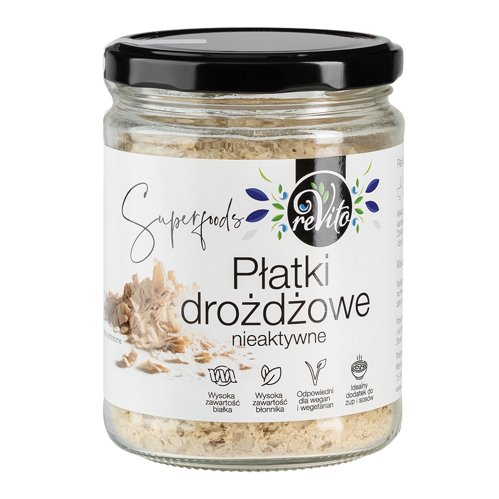 Płatki drożdżowe: idealne do wzbogacenia smaku potraw, bogate w witaminy z grupy B, białko i minerały. Doskonałe jako dodatek do zup, sosów, sałatek i dań wegańskich, nadający im serowy smak i wartości odżywcze. Płatki drożdżowe mogą również wspierać układ nerwowy dzięki wysokiej zawartości witaminy B12.