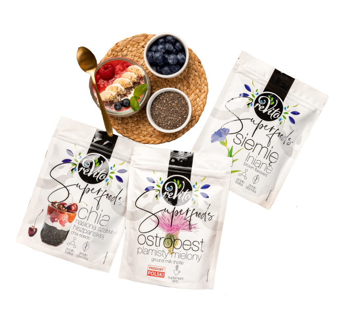 Super Food to innowacyjna linia produktów reVito, wspierających zdrowe odżywianie i witalność. Odkryj wyjątkowe produkty reVito, które łączą w sobie najwyższą jakość, naturalne składniki i doskonały smak.