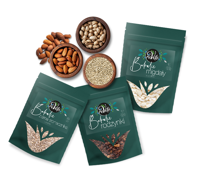 Produkty reVito podnoszą standardy zdrowego i naturalnego odżywiania. Charakteryzują się wysoką zawartością cennych składników odżywczych, takich jak białka, witaminy, minerały oraz antyoksydanty. Idealne dla osób dbających o zdrowy styl życia. Starannie wyselekcjonowane i wytwarzane z najwyższej jakości surowców, gwarantują świeżość i wyjątkowy smak.
